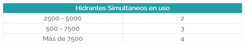 El caudal o gasto de diseño se considera a razón de 2.82 litros por segundo por cada hidrante, en función del área construida del edificio y del número de hidrantes en uso simultáneo. Además, se debe considerar al menos dos horas de uso continuo de la manguera, lo que impacta directamente en la capacidad del sistema.